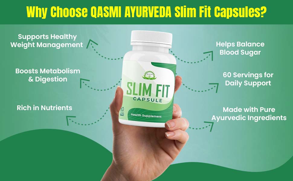 Slim Fit Capsule by Qasmi Ayurveda is a 100% natural Ayurvedic formulation designed to support healthy weight loss, belly fat reduction, and metabolism boost — without side effects. Powered by ancient herbs like Guggul, Triphala, Garcinia, and Green Tea Extract, it helps burn excess fat, suppress appetite, and enhance energy levels for a fitter, lighter you.
