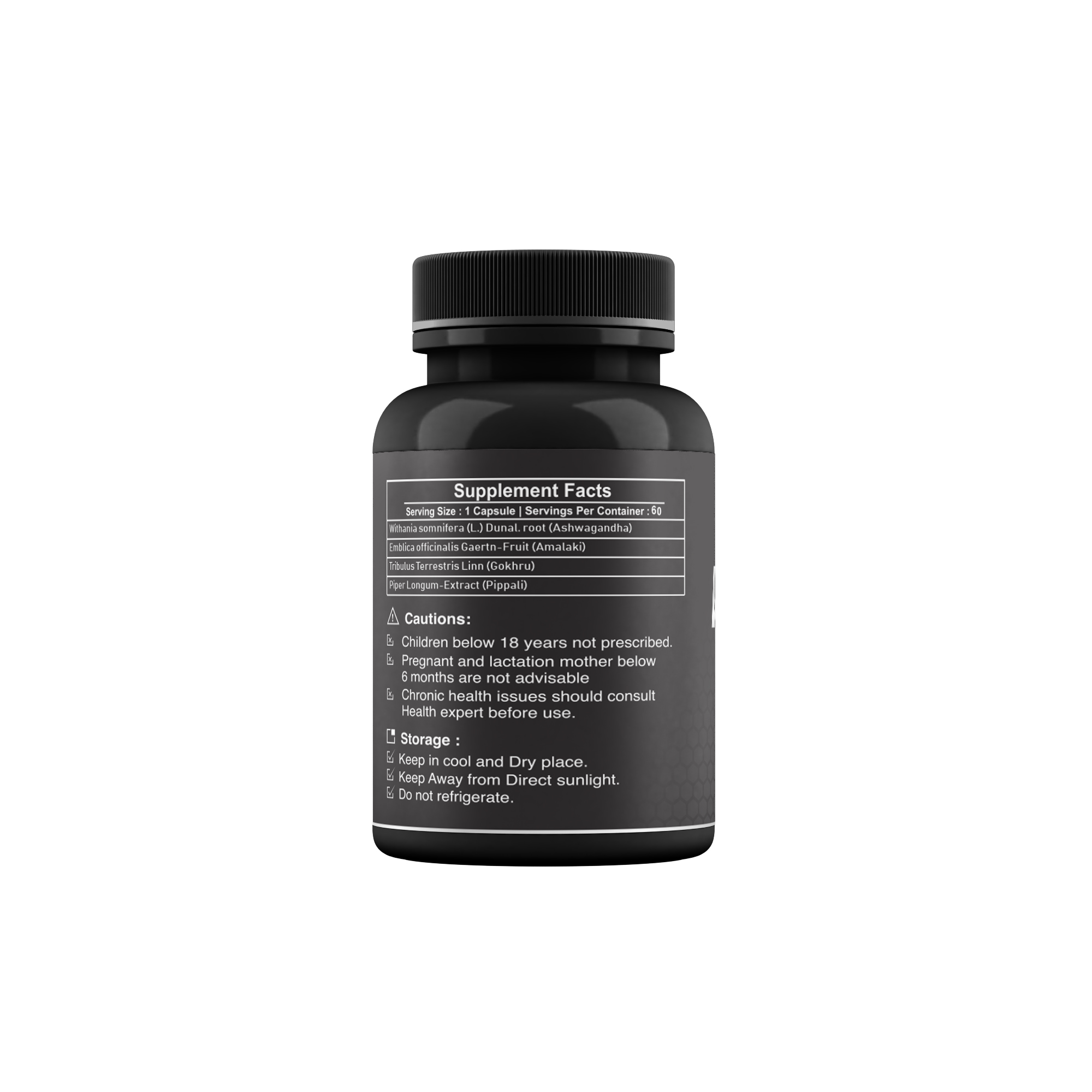 Soybean-50mg, Rajma-25mg, Jai-25mg, Khuskhas-25mg, Moongfali-25mg, Chaulai, Masoor-25mg, Kaunch Beej-20mg, Gheekwar-20mg, Safed Moosli-20mg, Karela-10mg, Arjun-10mg, Chob Cheeni-10mg, Kusum-10mg, Narangi ka chilka-10mg, Asghand-10mg, Chirayta-10mg, Bidari-10mg, Aksrkara-10mg, Sonth-10mg, Giloy-10mg, Manjishtha-10mg, Saunf, Gullab ka phool-05mg, Jeyfal-05mg, Shilajeet-05mg, Zaitoon-03mg, long-03mg